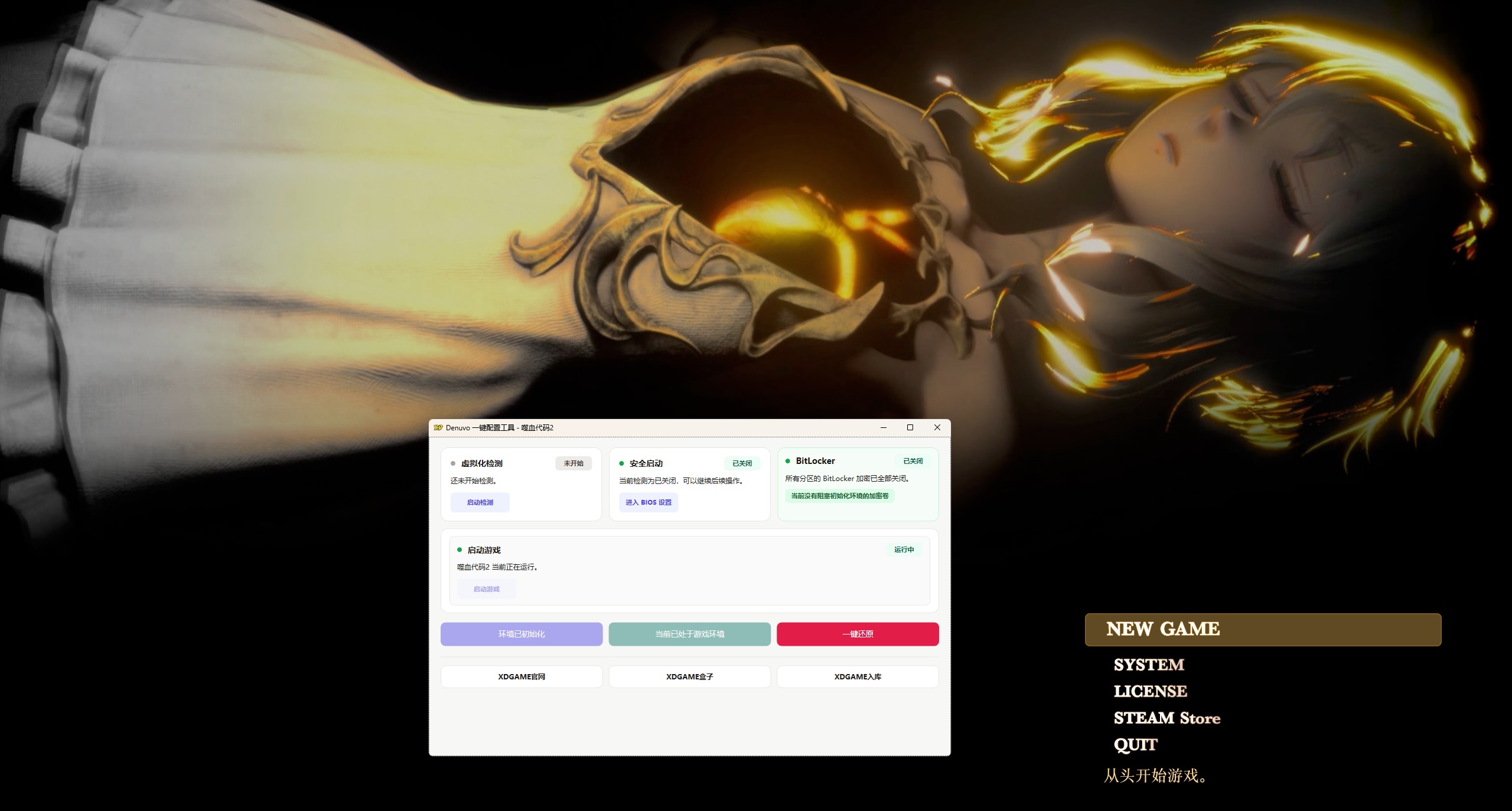 重启电脑后继续打开Denuvo.exe点击 启动游戏 → 开始玩耍 ↓ 站长亲测截图 ↓