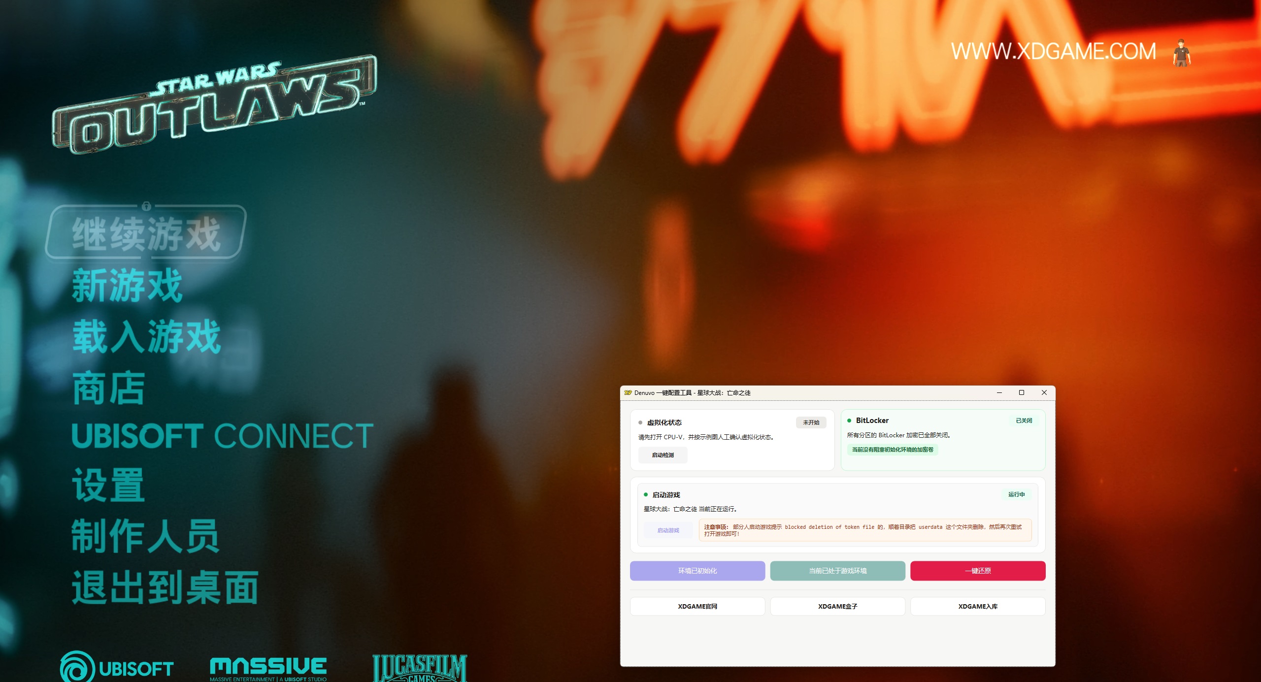 重启电脑后继续打开Denuvo.exe点击 启动游戏 → 开始玩耍
