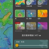 可定制预报图层此外,应用的用户界面设计极为具体且独特,采用分层风格,包含温度、湿度、风速、气压等信息。其他天气因素会在地图的不同位置以视觉形式显示,使用户能够清晰掌握必要信息并相应调整计划。